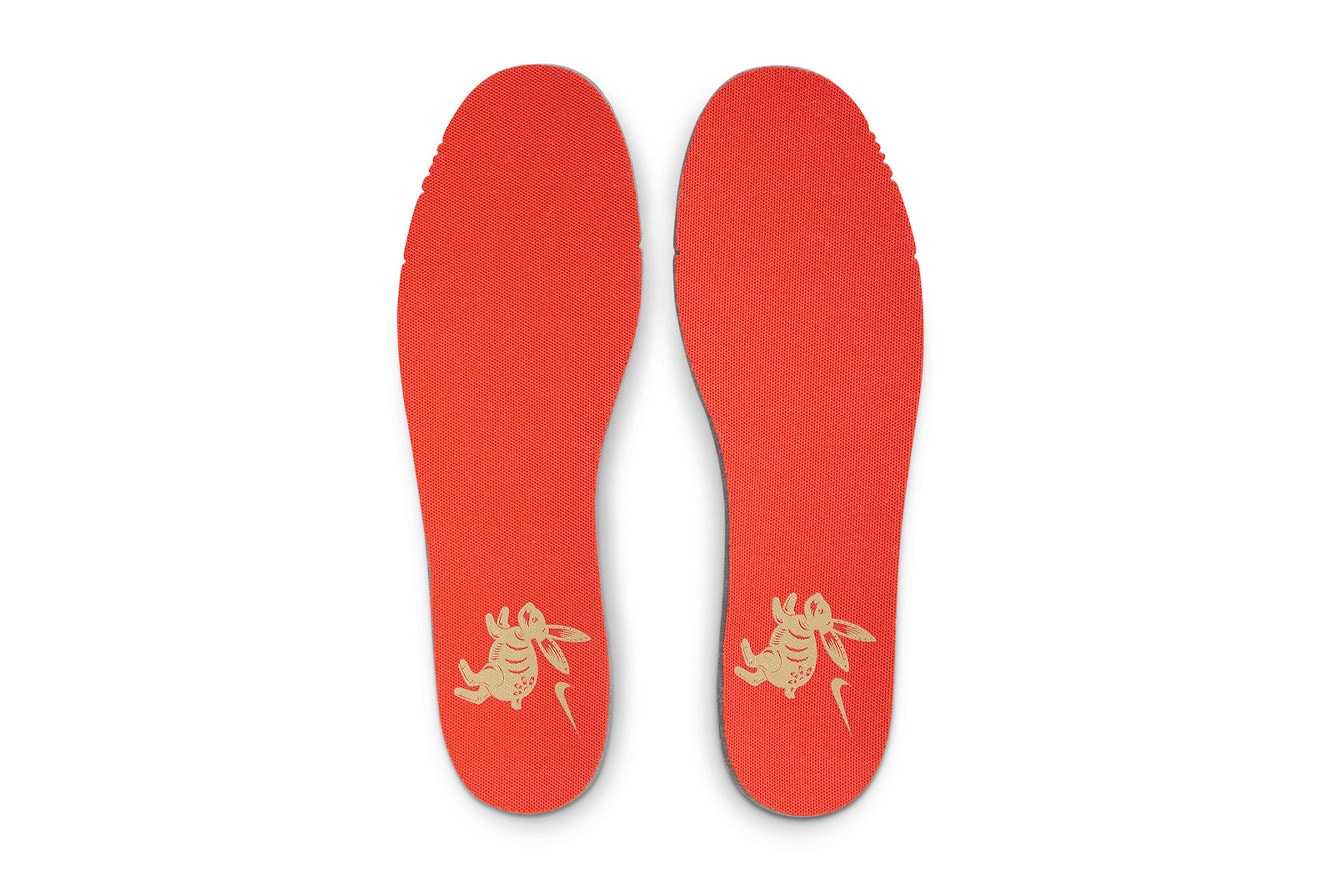 Lace dubraes are seen with an orange hue debossed with “2023” wordings to pay homage to the new year. Additionally, textured tongue tags are adorned with Chinese wording that translates to “rabbit” in English, and gilded bunny graphics are stamped on the lateral heels and insoles. The sneaker is finished with sail-tinted midsoles and semi-translucent orange bottoms.