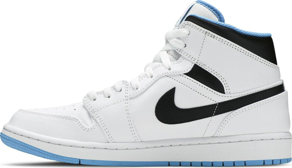 Nearly all of the design is constructed of white leather, with subtle black embellishments on the collar. The Nike Swoosh is crafted from black leather. The Wings Air Jordan logo, a portion of the lining, the outsole, the insole, and the famous Jumpman on the tongue all stand out in the Hornets-inspired Laser Blue. Cop this exclusive Air Jordan 1 Mid at Hype Vault, Asia's top trusted high-end streetwear and sneakers store.