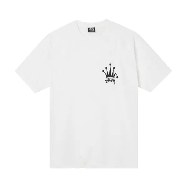 The Stussy Regal Crown Pigment Dyed Tee in Natural exudes vintage streetwear charm. Crafted from pigment-dyed cotton, it features bold crown graphics for a royal touch. Perfect for casual, everyday wear with an edge. Available now at Hype Vault.