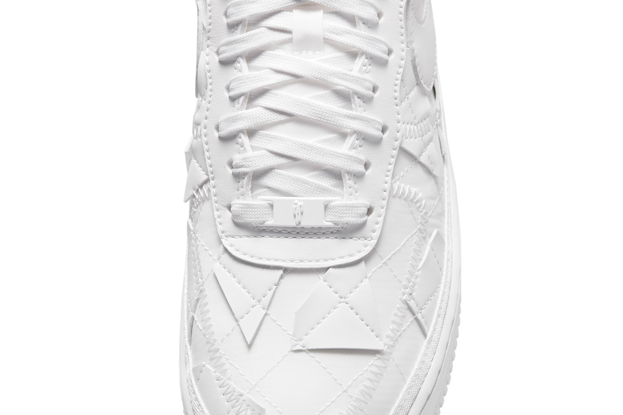 The future pairs include patchwork uppers made of repurposed materials, just like previous hues. The exposed stitching highlights, ripstop nylon wrap guards, and leather cuts that imitate the AF1's distinguishing lines are attached to the quilted nylon foundation.