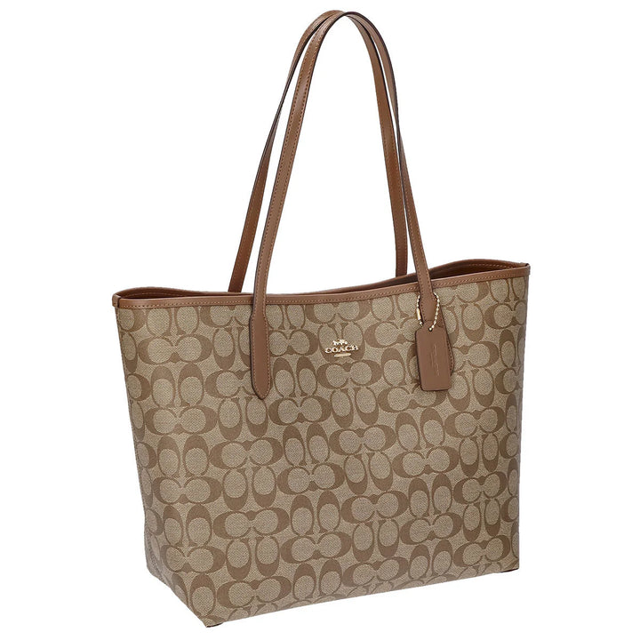 Coach City Tote Bag In Signature Canvas Khaki/Saddle