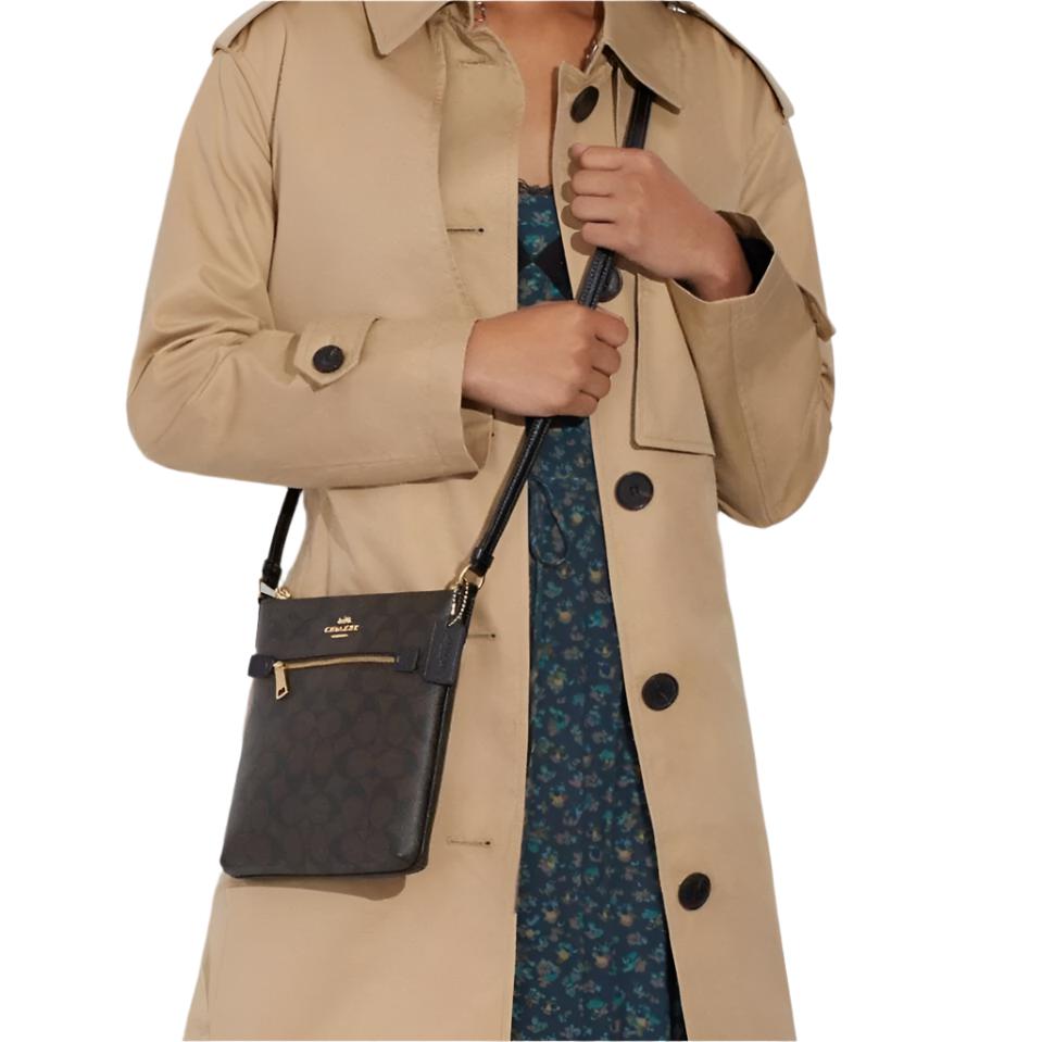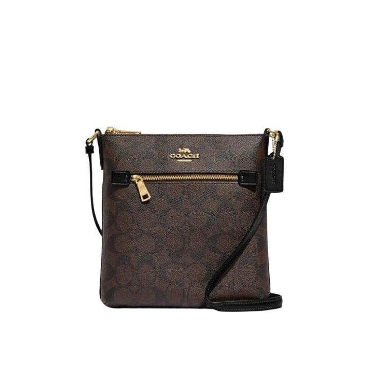Coach Mini Rowan File Bag In Signature Canvas Brown/Black