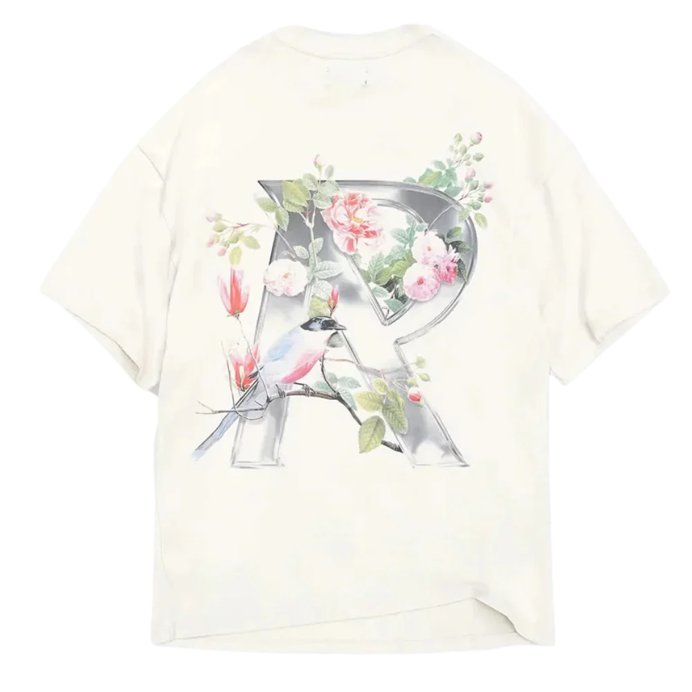 Dressed in a clean Flat White base, the tee features a bold floral graphic that adds artistic flair and character without overpowering the aesthetic. Subtle logo touches anchor the design, giving it that signature Represent edge: understated yet unmistakably stylish.