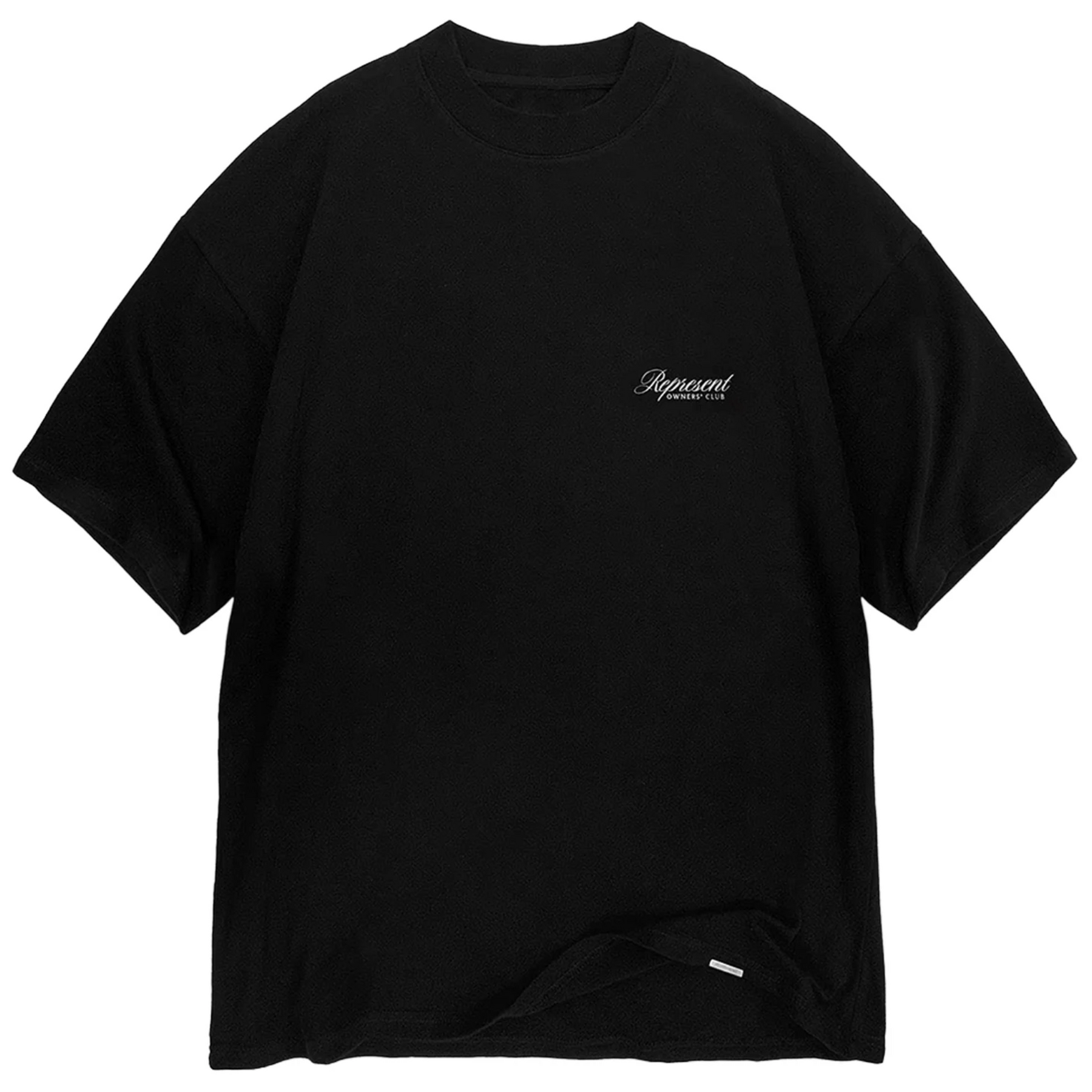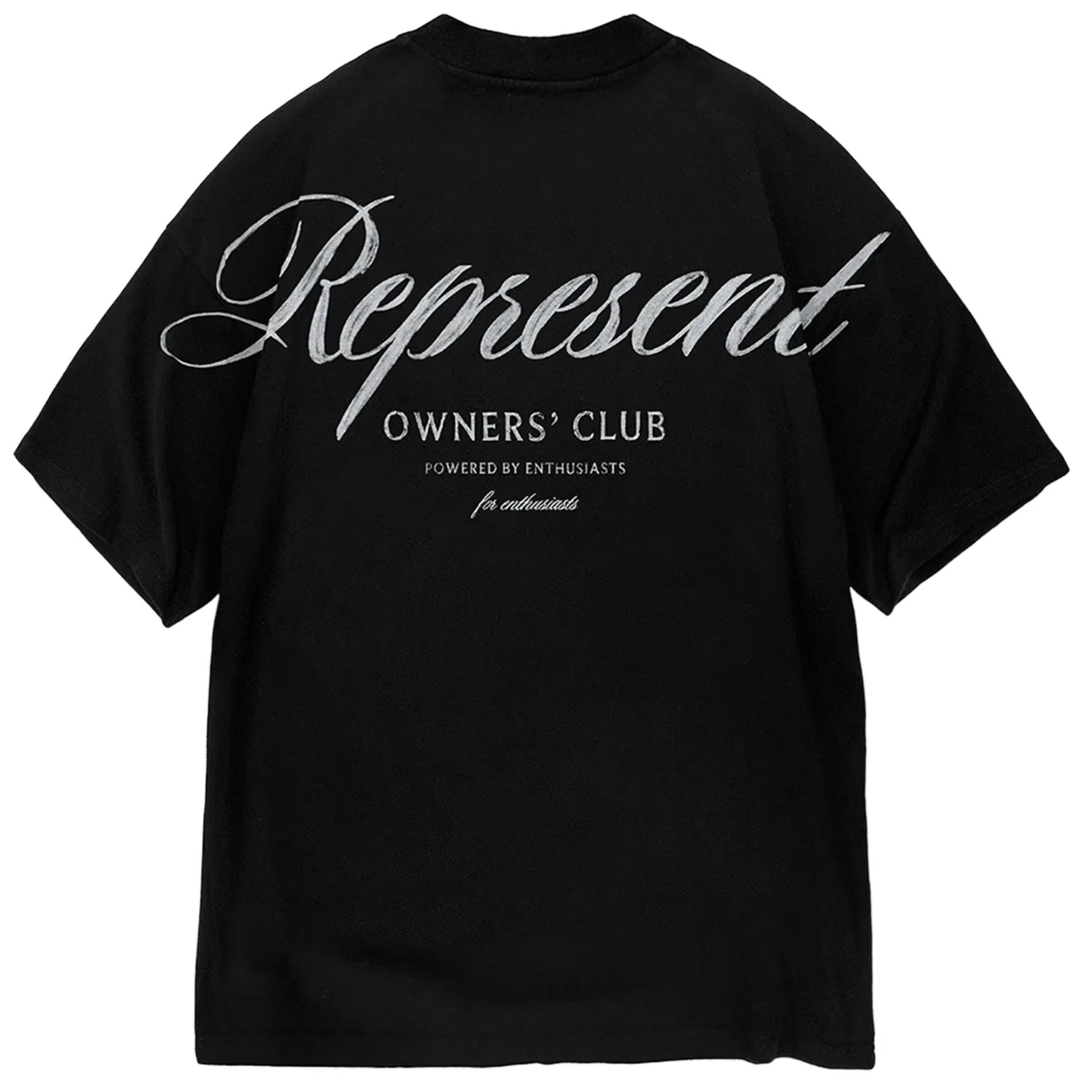The Represent Owners Club Script Tee ‘Black’ (SS25) elevates everyday streetwear with bold back detailing and premium construction. Made from heavyweight cotton, the tee offers a relaxed, structured fit designed for all-day comfort and durability.