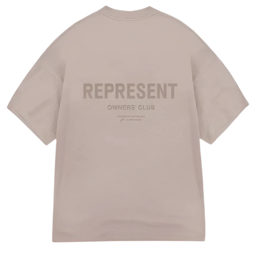 Finished in a warm Mushroom hue, it features the signature Owners Club graphic printed boldly across the back, balanced by subtle front detailing for an elevated yet understated look. Designed for modern minimalists who appreciate quality and style, this tee pairs perfectly with everything from denim to layered outerwear.